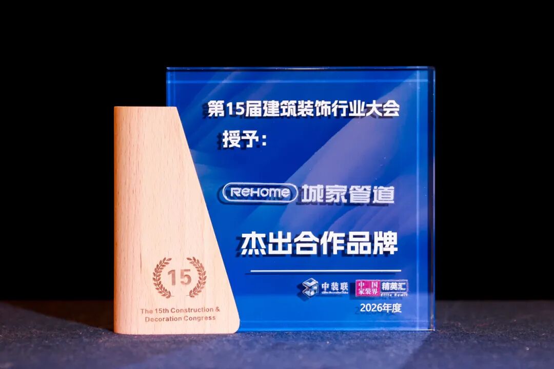 城家管道荣获中装联2026年度“杰出合作品牌”奖。此次获荣,不仅是行业对城家产品创新力与品牌影响力的高度认可,更是对城家始终坚持 “与合作者共赢” 理念的最佳印证。城家将与行业同仁携手,共同推动建筑品质升级。